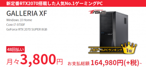 他のメーカーと比べると同スペックでも1万円~2万円程度安く購入することが出来るのがガレリアの一番の特徴です!